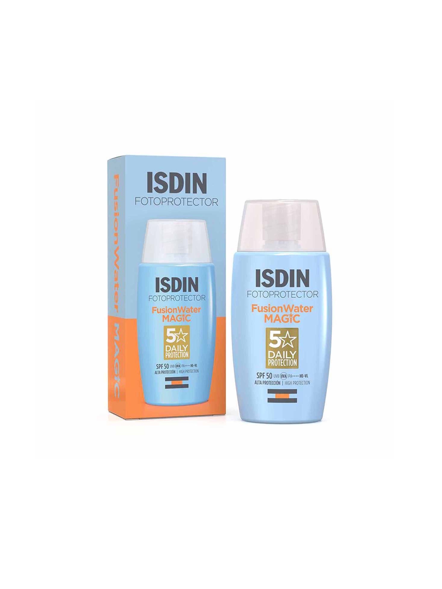 ضدآفتاب ISDIN Fotoprotector Fusion Water Magic SPF 50 یک محافظتکننده روزانه صورت با فرمول بسیار سبک، جذب سریع و بافت شفاف است که پوست را در برابر UVB، UVA، نور آبی و آلودگیهای محیطی محافظت میکند. این محصول بهخصوص برای استفاده روزمره و زیر آرایش ایدهآل است زیرا هیچ حس چربی یا سنگینی روی پوست باقی نمیگذارد و بافت آبمحورش بهسرعت جذب میشود. با افزودن ترکیبات مرطوبکننده مانند اسید هیالورونیک و آنتیاکسیدانها مثل ویتامین E، این ضدآفتاب به حفظ نرمی و رطوبت پوست کمک میکند و از نشانههای پیری ناشی از نور خورشید جلوگیری مینماید.