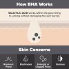 بتا هیدروکسی اسید مستقیما به عمق منافذ پوست می رود ؛ جایی که جوش های سر سیاه ، سبوم اضافی و آلودگی های روزانه تجمع پیدا می کنند و انسداد منافذ آغاز می شود.