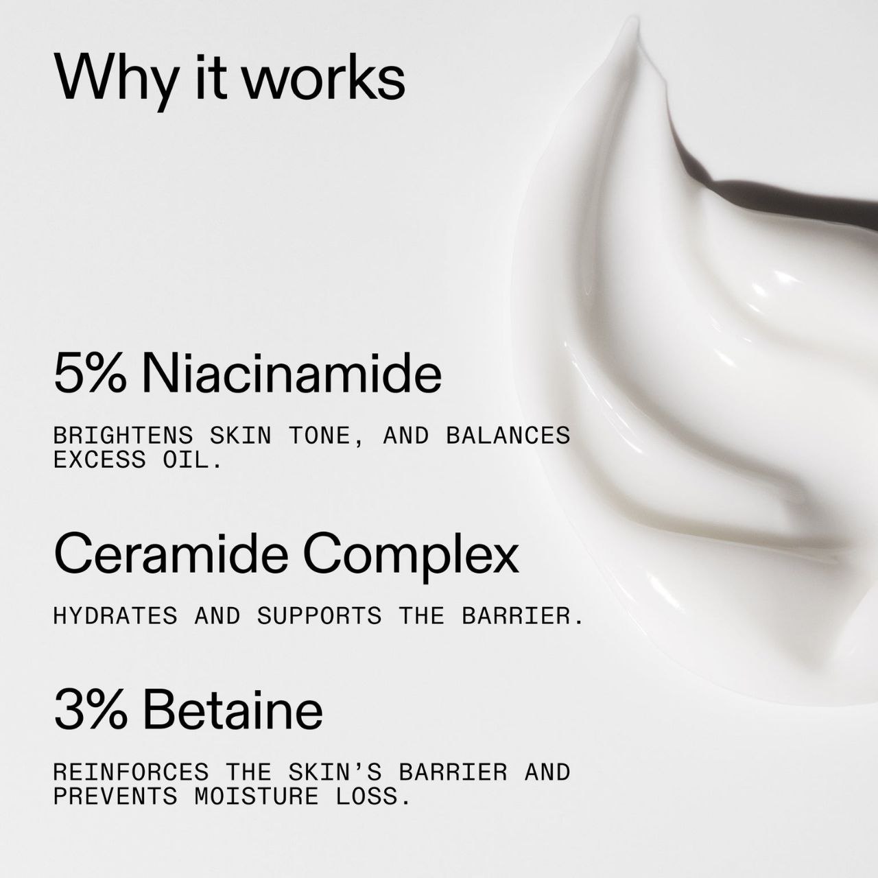 Water (Aqua), Glycerin, Propanediol, Niacinamide, Betaine, Squalane, Panthenol, Sodium Polyacrylate, Phenoxyethanol, Ethylhexylglycerin, Disodium EDTA, Xanthan Gum