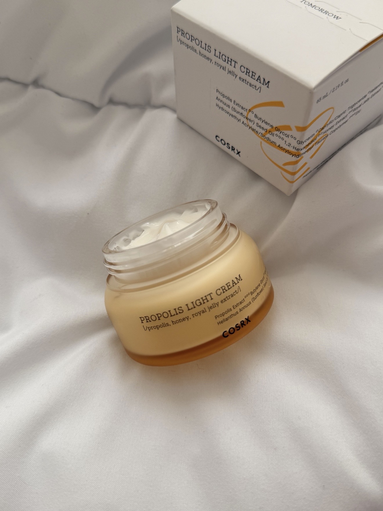 Propolis Extract, Butylene Glycol, Glycerin, Caprylic/Capric Triglyceride, Helianthus Annuus (Sunflower) Seed Oil, 1,2-Hexanediol, Honey Extract, Royal Jelly Extract, Hydroxyethyl Acrylate/ Sodium Acryloyldimethyl Taurate Copolymer, Cassia Obtusifolia Seed Extract, Cetearyl Olivate, Beeswax, Cetearyl Alcohol, Sorbitan Olivate, Allantoin, Arginine, Carbomer, Xanthan Gum